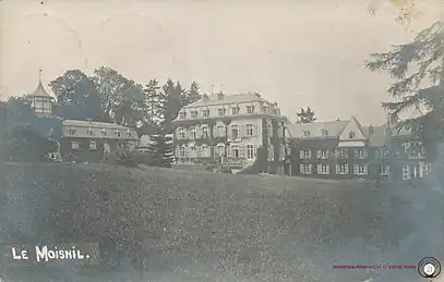 Château du Moisnil : à gauche bâtiment subsistant construit en 1902 par Jules van Dievoet (carte postale de 1921) | ||