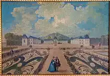 Jean-Baptiste Claude de Bragelongne[7] situe l'achèvement de la seconde aile en 1725 mais les travaux sur les communs et autres chantiers, notamment celui de la ferme reconstruite à l'extérieur du château, ont pu durer quelques années de plus. À leur achèvement, le Saussay est tel qu'on le voit sur le tableau ci-contre.