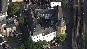 Le château est situé dans la vielle ville de Linz au nord de la porte du Rhin (Rheintor) qui, comme le château lui-même, était intégré dans l'enceinte médiéval de la ville. Il est aujourd'hui séparé du fleuve par la route fédérale B42 et par la ligne du chemin de fer, environ à moitié de distance entre Cologne et Coblence.