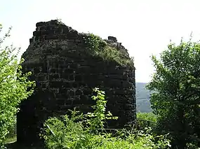 |   Ruine d'une tour de guet du château de Hammerstein en haut du rocher, au-dessus du Rhin. Photo prise en Août 2020 | |