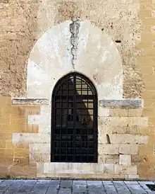 Depuis la porte principale, avec son arc en ogive, on entre dans la cour trapézoïdale, où se trouvent l'escalier menant à l'étage supérieur ainsi que les différentes pièces du rez-de-chaussée. L'escalier présente des bas-reliefs représentant des animaux et des scènes de chasse.