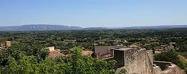Le village est posé sur une colline, massif rocheux de calcaire urgonien, séparant la vallée du Rhône du cœur du Comtat Venaissin et de son importante plaine alluviale très favorable à l'agriculture à l'est[2].