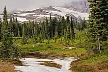 | Zone du mont Rainier | Piémonts septentrionaux du mont Rainier, Monts Sourdough, Piémonts occidentaux du mont Rainier, Massif du mont Rainier, Piémonts orientaux du mont Rainier, Zone Sud-Ouest du mont Rainier, Chaînon Tatoosh | Mont Rainier | 4 392 m | [B4] | |