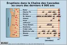 - (en) [PDF] Dan Dzurisin, Peter H. Stauffer, James W. Hendley II, Living With Volcanic Risk in the Cascades, 1997, révision 2008, United States Geological Survey