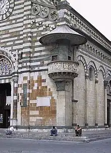 Elle est située sur la façade, à l'angle sud-est, de la cathédrale de Prato, en Toscane.