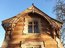 Le chalet est un mélange de style néogothique pour ses élévations et de style savoyard pour sa charpente débordante[1]. Il ressemble aux pavillons construits à la même époque aux entrées de différents parcs de Paris mais est unique, dans ce style, dans la région Auvergne-Bourbonnais[1]. De forme rectangulaire, il se compose d'une cave avec accès extérieur, d'un rez-de-chaussée et d'un étage sous comble avec deux murs pignons et deux autres goutteraux. Trois des quatre façades sont percées de grandes fenêtres divisées par une croisée de pierre surmontée pour celles du rez-de-chaussée d'un double arc en accolade dessiné sur le front du linteau[1].