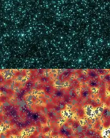 Un autre résultat important du HDF était la présence en très petit nombre d'étoiles de premier plan. Pendant des années, les astronomes se sont interrogés sur la nature de la matière noire, une masse apparemment indétectable mais dont les observations conduisent à penser qu'elle occupe 90 % de la masse de l'univers[17]. L'une des théories voulait que la matière noire fût constituée de « Machos » (en anglais Massive Astrophysical Compact Halo Objects, soit en français Objets astrophysiques compacts et massifs du halo) des objets faibles mais massifs, tels que les naines rouges et les planètes de régions extérieures aux galaxies[18].