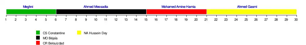 - Le MO Béjaïa joue un match au stade du 8-Mai-1945 à huis clos en raison d'une sanction. Le CS Constantine et le MC Oran jouent quelques matchs au Stade Benabdelmalek et au Stade Habib-Bouakeul, respectivement.