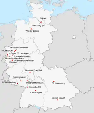 | FC Nuremberg | Städtisches Stadion | 56 500 | Nuremberg |