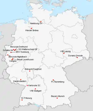 | Borussia Mönchengladbach | Bökelbergstadion | 34 500 | Mönchengladbach |