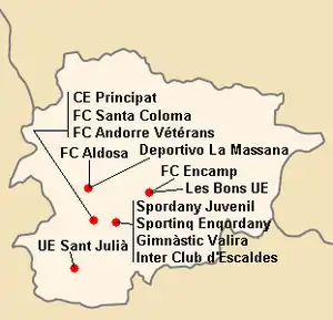 | Relégués en Segona Divisió | FC Aldosa (lt) UE Les Bons (lt) Spordany Juvenil (lt) |