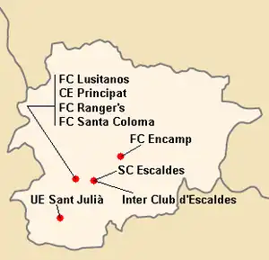 En raison du peu de stades se trouvant sur le territoire d'Andorre, les matchs sont joués exclusivement à l'Estadi Nacional d'Aixovall d'une capacité de 1 500 places.