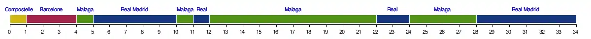 | Barcelone | 2 | 1 | 1 | 1 | 3 | 2 | 2 | 2 | 2 | 3 | 2 | 3 | 2 | 2 | 5 | 5 | 5 | 5 | 5 | 4 | 3 | 3 | 3 | 3 | 3 | 3 | 3 | 3 | 3 | 3 | 3 | 3 | 2 | 2 | 3 | |