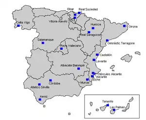 | UD Las Palmas | Grande Canarie | 32 500 | Las Palmas de Gran Canaria |