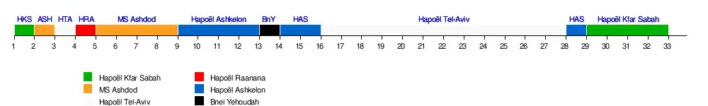 | H. Tel-Aviv | 13 | 11 | 14 | 12 | 13 | 12 | 9 | 9 | 11 | 12 | 11 | 9 | 9 | 10 | 10 | 14 | 14 | 14 | 14 | 14 | 14 | 14 | 14 | 14 | 14 | 14 | 14 | 12 | 13 | 13 | 13 | 13 | 19 | |||||
