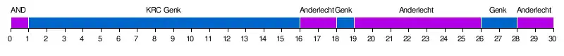 | K. RC Genk | 3 | 1 | 1 | 1 | 1 | 1 | 1 | 1 | 1 | 1 | 1 | 1 | 1 | 1 | 1 | 1 | 2 | 2 | 1 | 2 | 2 | 2 | 2 | 2 | 2 | 2 | 1 | 1 | 2 | 2 |