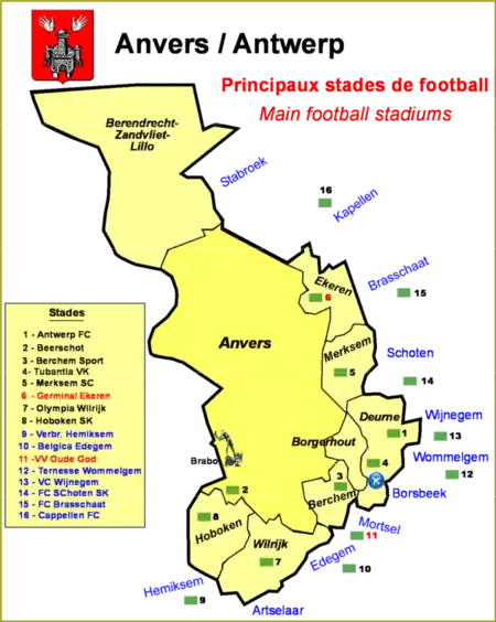 | 8 | Voetbal Vereeniging Oude God Sport | 68 | Mortsel | ?? | 12 saisons | 14e Série A | |