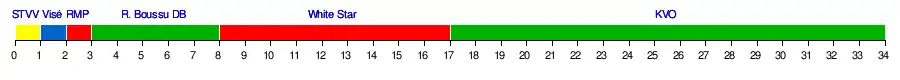 | 4 | R. White Star Woluwe Football Club | 1 | 6 | 5 | -12 | R. White Star Woluwe Football Club | 1-4 | 1-2 | 0-2 |
