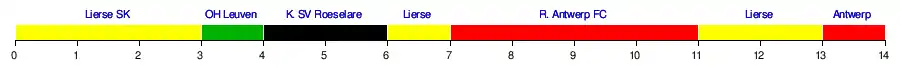 | Lierse SK | 2014 | 7e | NC | 2017 | Herman Vanderpoorten | 14 538 | |
