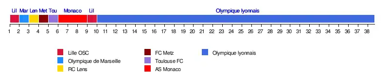 | Olympique lyonnais | 2-1 | 2-1 | 0-0 | 5-1 | 4-0 | 2-1 | 1-0 | 1-0 | 1-1 | 2-0 | 0-0 | 2-0 | 0-0 | 0-1 | 2-1 | 3-2 | 1-1 | 1-0 | 4-0 | |
