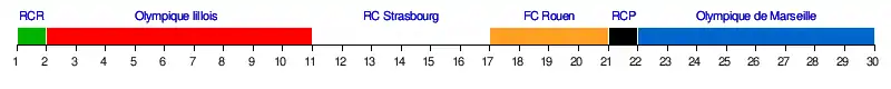 | Olympique de Marseille | 0-1 | 4-1 | 3-0 | 2-1 | 4-0 | 4-0 | 4-4 | 3-2 | 2-1 | 1-0 | 4-1 | 2-0 | 2-0 | 3-0 | 5-1 | |