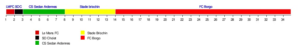 | Châteauroux | 12 | 4 | 7 | 4 | 9 | 9 | 3 | 5 | 4 | 6 | 8 | 9 | 12 | 12 | 13 | 14 | 14 | 14 | 14 | 11 | 11 | 11 | 14 | 10 | 9 | 10 | 8 | 6 | 6 | 6 | 8 | 10 | 12 | 11 | 5 | |