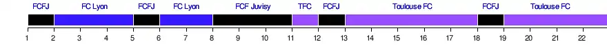 | FCF Juvisy | 1 | 3 | 3 | 2 | 1 | 2 | 2 | 1 | 1 | 1 | 2 | 1 | 2 | 2 | 2 | 2 | 2 | 1 | 2 | 2 | 2 | 2 |