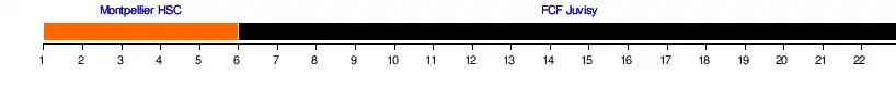 | Montpellier HSC | 1 | 1 | 1 | 1 | 1 | 2 | 2 | 2 | 2 | 2 | 2 | 2 | 2 | 2 | 2 | 2 | 2 | 2 | 2 | 2 | 2 | 2 |