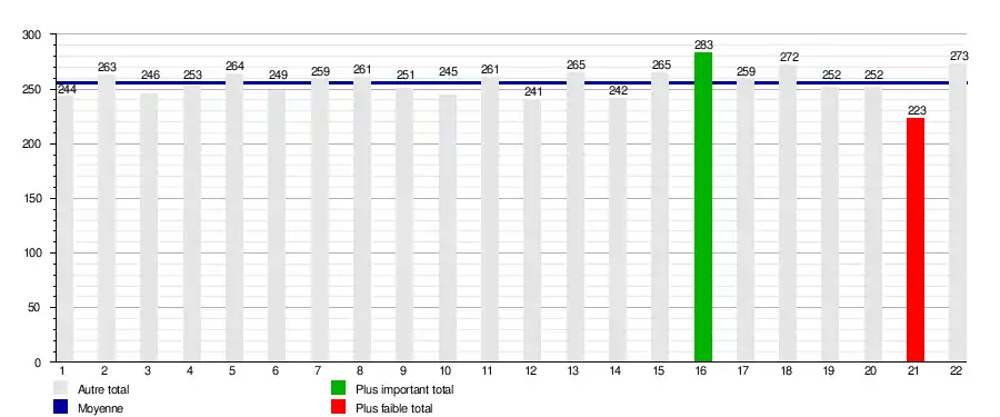 | Celles-sur-Belle | 22-23 | 26-34 | 25-25 | 20-20 | 20-16 | 23-27 | 22-29 | 24-29 | 28-20 | 25-32 | |