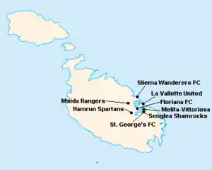 L'île de Malte étant relativement petite, les clubs évoluent tous au stade National Ta'Qali (17 400 places). Certains cependant ont leur propre enceinte qu'ils peuvent éventuellement utiliser.