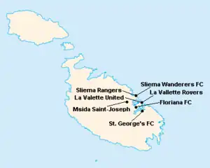 L'île de Malte étant relativement petite, les clubs évoluent tous au stade National Ta'Qali (17 400 places). Certains cependant ont leur propre enceinte qu'ils peuvent éventuellement utiliser.