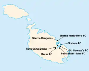 L'île de Malte étant relativement petite, les clubs évoluent tous au stade National Ta'Qali (17 400 places). Certains cependant ont leur propre enceinte qu'ils peuvent éventuellement utiliser.