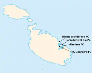 L'île de Malte étant relativement petite, les clubs évoluent tous au stade National Ta'Qali (17 400 places). Certain cependant ont leur propre enceinte qu'ils peuvent éventuellement utiliser.