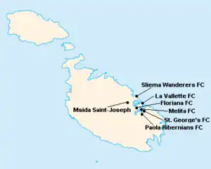L'île de Malte étant relativement petite, les clubs évoluent tous au stade National Ta'Qali (17 400 places). Certain cependant ont leur propre enceinte qu'ils peuvent éventuellement utiliser.