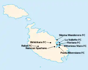 L'île de Malte étant relativement petite, les clubs évoluent tous au stade National Ta'Qali (17 400 places). Certain cependant ont leur propre enceinte qu'ils peuvent éventuellement utiliser.