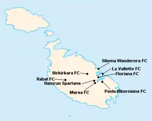L'île de Malte étant relativement petite, les clubs évoluent tous au stade National Ta'Qali (17 400 places). Certain cependant ont leur propre enceinte qu'ils peuvent éventuellement utiliser.