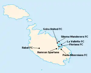 L'île de Malte étant relativement petite, les clubs évoluent tous au stade National Ta'Qali (17 400 places). Certain cependant ont leur propre enceinte qu'ils peuvent éventuellement utiliser.