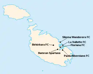 L'île de Malte étant relativement petite, les clubs évoluent tous au stade National Ta'Qali (17 400 places). Certain cependant ont leur propre enceinte qu'ils peuvent éventuellement utiliser.