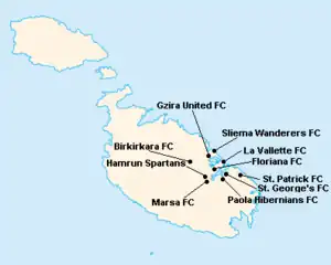 L'île de Malte étant relativement petite, les clubs évoluent tous au stade National Ta'Qali (17 400 places). Certain cependant ont leur propre enceinte qu'ils peuvent éventuellement utiliser.
