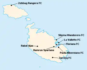 L'île de Malte étant relativement petite, les clubs évoluent tous au stade National Ta'Qali (17 400 places). Certain cependant ont leur propre enceinte qu'ils peuvent éventuellement utiliser.