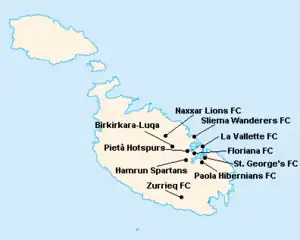 L'île de Malte étant relativement petite, les clubs évoluent tous au stade National Ta'Qali (17 400 places). Certain cependant ont leur propre enceinte qu'ils peuvent éventuellement utiliser.
