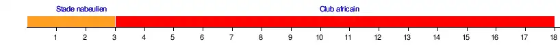 | Stade nabeulien | 75-77 | 80-89 | 77-72 | 67-69 | 94-56 | 79-64 | 74-71 | 70-56 | 58-65 | |