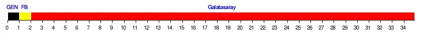 | Galatasaray | 2 | 5 | 1 | 1 | 1 | 1 | 1 | 1 | 1 | 1 | 1 | 1 | 1 | 1 | 1 | 1 | 1 | 1 | 1 | 1 | 1 | 1 | 1 | 1 | 1 | 1 | 1 | 1 | 1 | 1 | 1 | 1 | 1 | 1 | 32 | - |
