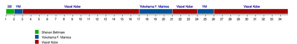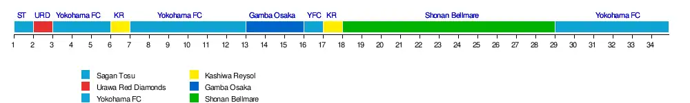 | Yokohama F.M | 4 | 1 | 2 | 6 | 3 | 6 | 5 | 5 | 3 | 4 | 2 | 2 | 2 | 2 | 2 | 2 | 1 | 1 | 1 | 1 | 2 | 2 | 2 | 1 | 1 | 2 | 2 | 2 | 2 | 2 | 2 | 2 | 2 | 2 | 7 | |