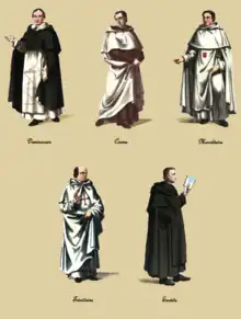La chape chorale est, à l'origine, employée par la plupart des communautés séculières vouées au chant de l'office, pour se protéger du froid et couvrir les vêtements ordinaires[5]. Dès le Moyen Âge, elle est adoptée par les chanoines réguliers comme habit de chœur. Comme telle, elle leur est empruntée par certains ordres mendiants, tels que les dominicains, carmes, trinitaires, mercédaires ou encore les servites[5].