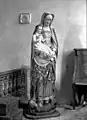 Le mobilier et la statuaire sont intéressants : une tribune de 1719, un autel en bois polychrome, trois statues en bois évidé et peint : saint Joseph, saint Nicodème et saint Roch, une Vierge à l’enfant également en bois polychrome, datant du XVIIe siècle : Marie, portant Jésus, foule aux pieds un démon mi femme-mi serpent, peut-être Ève puisque le démon semble tenir une pomme d’une main[1],[2].