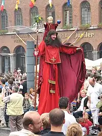 D’après une tradition locale, des reliques de saint Christophe auraient été rapportées (1260) du Moyen-Orient par la comtesse Marguerite de Hainaut (dite ‘de Constantinople’) et donnée à l’église de Flobecq. Une dévotion pour le saint s’est développée dans le village, et sans doute une chapelle construite (il n’en reste aucune trace). Cependant on mentionne un ‘échassier Saint-Christophe’ dans le folklore local depuis 1746. La célèbre procession des Géants d’Ath inclut encore un échassier illustrant le saint ‘’Porteur-du-Christ’.