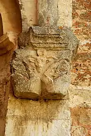 Les arcs d'ouverture des absidioles retombent sur des chapiteaux sculptés qui couronnaient des colonnes dont il ne reste que les bases[2].