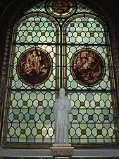 Les vitraux très sobres contiennent chacun deux médaillons représentant différents épisodes de la vie de Vincent de Paul, en teinte marron rehaussé de jaune. Les vitraux datent de 1864.