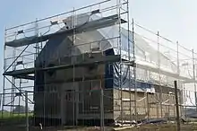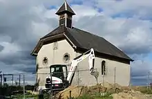 - le remplacement de toute la toiture par l'entreprise Ramel Charpente, qui a déposé l'ancien toit et réalisé une toiture et un clocher flambant neufs dont l'installation a été assez spectaculaire.
